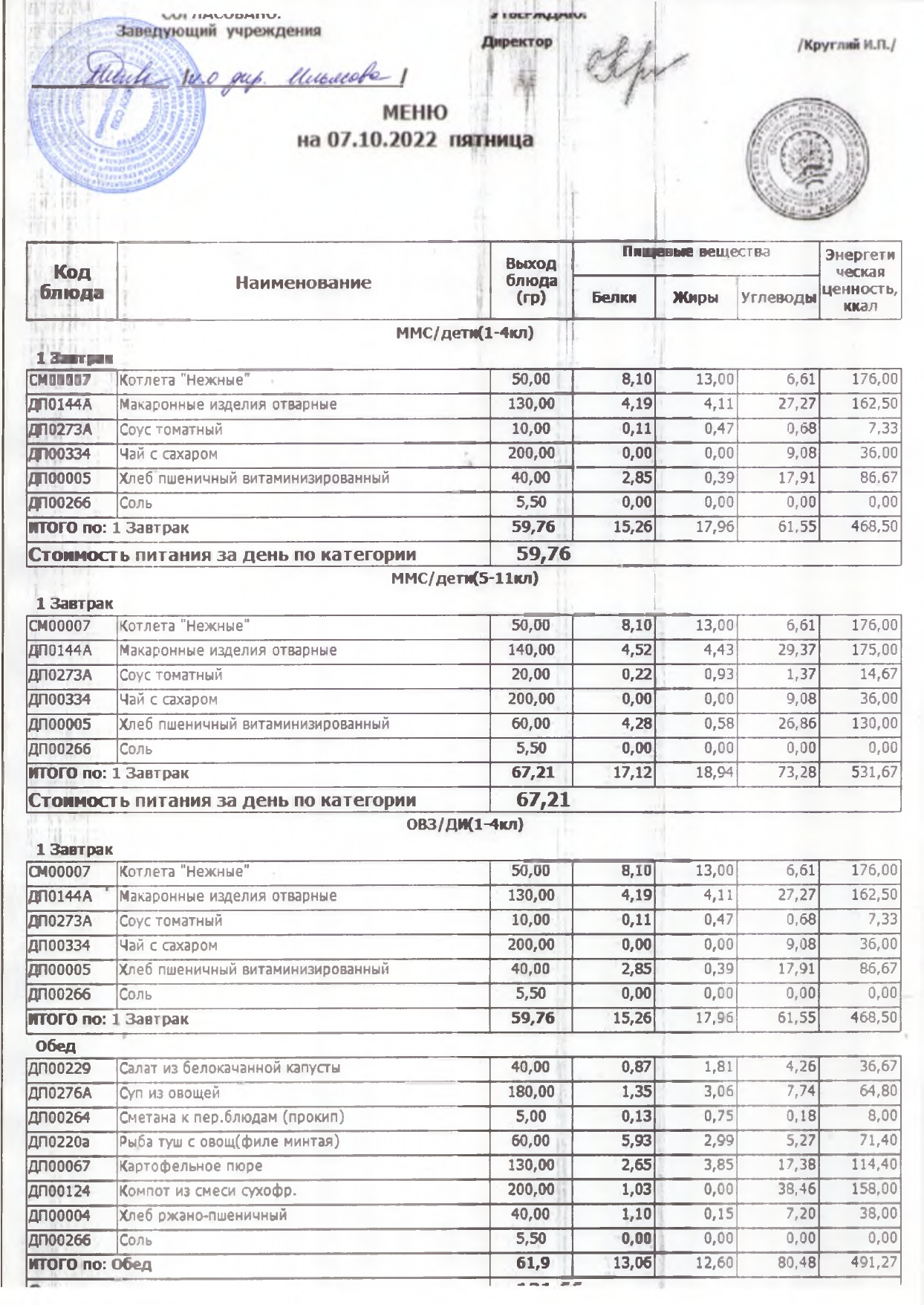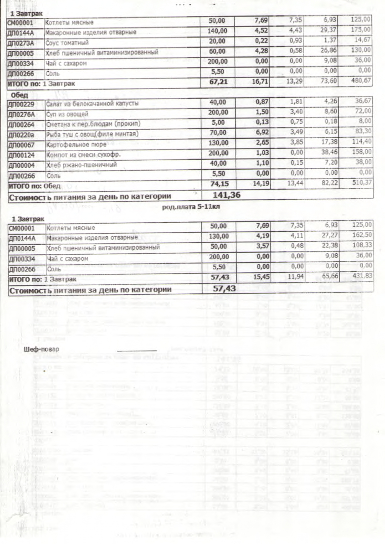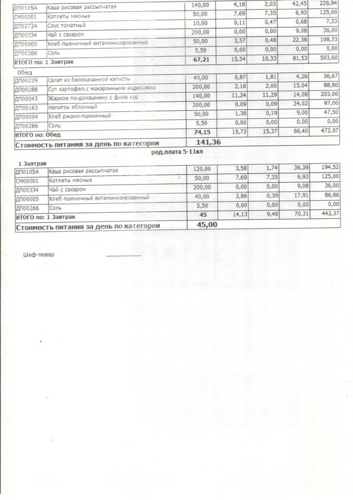Фотографии контрольных блюд
