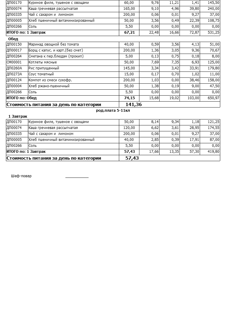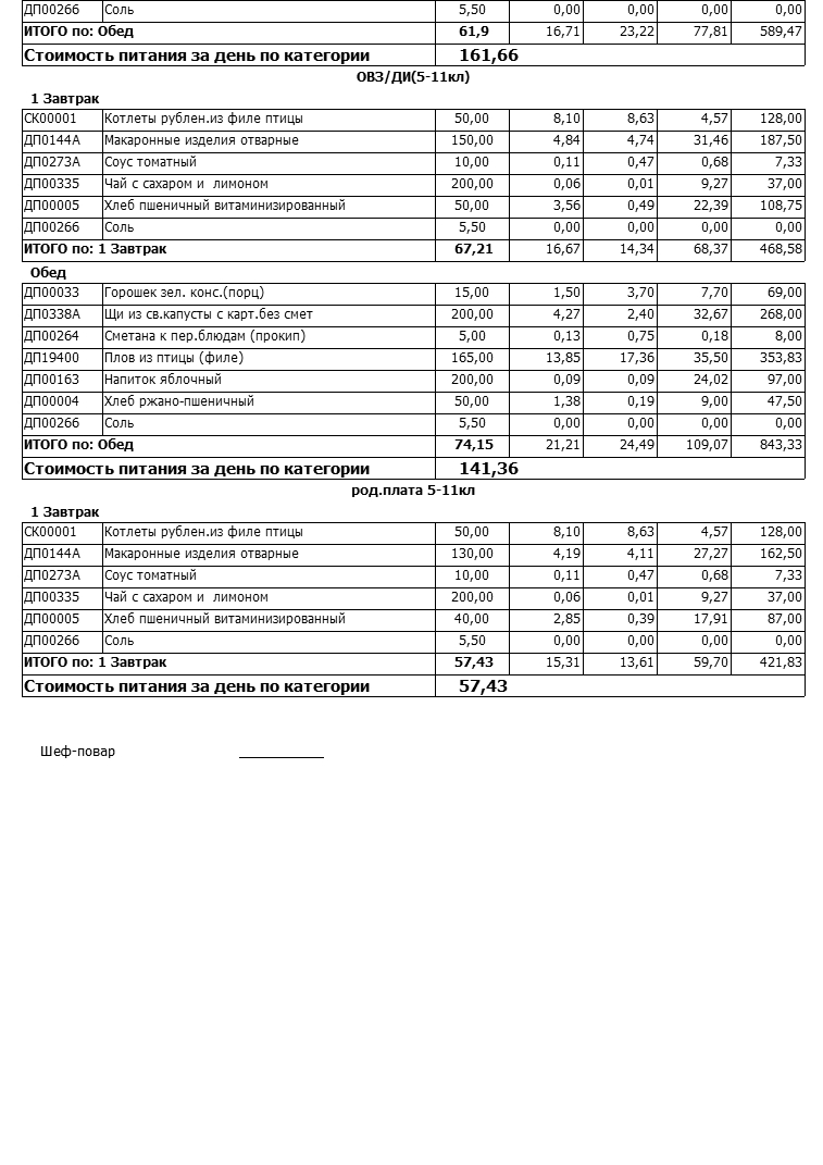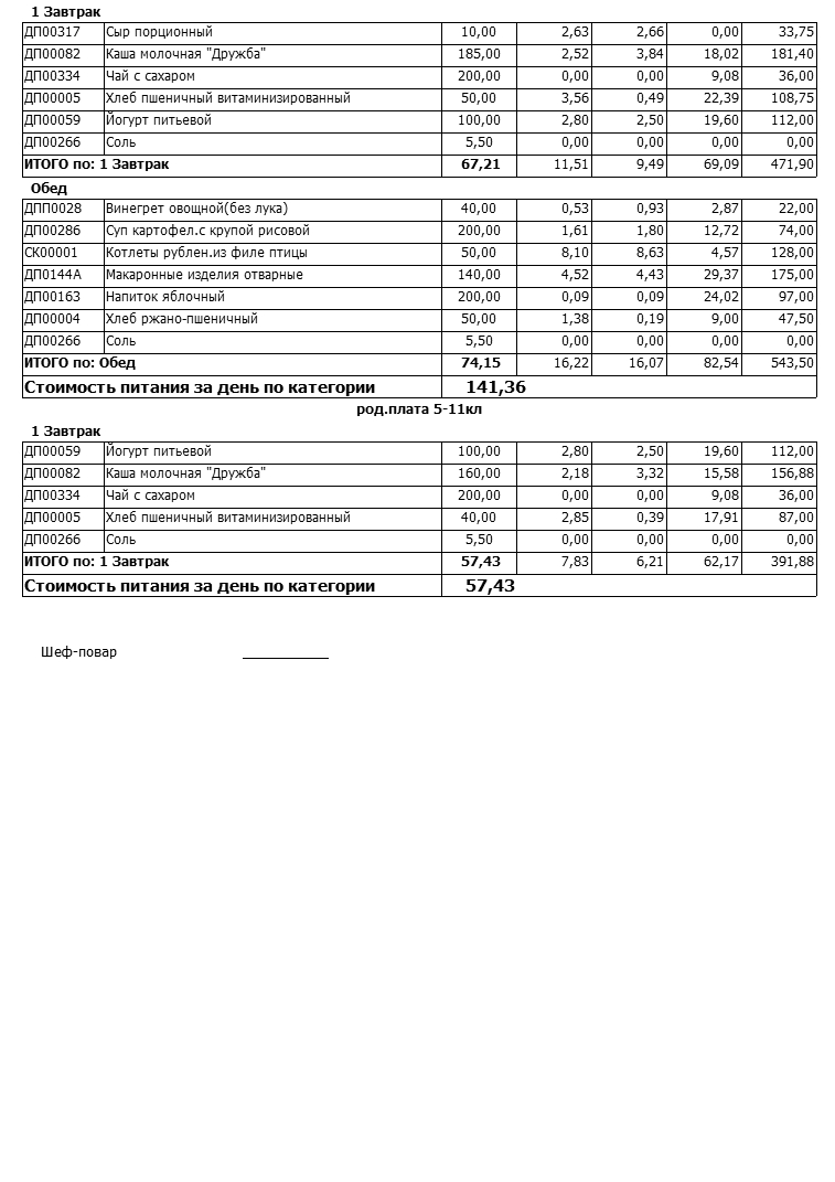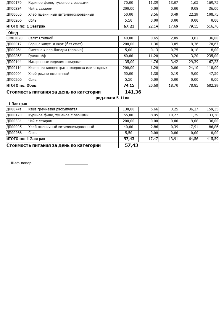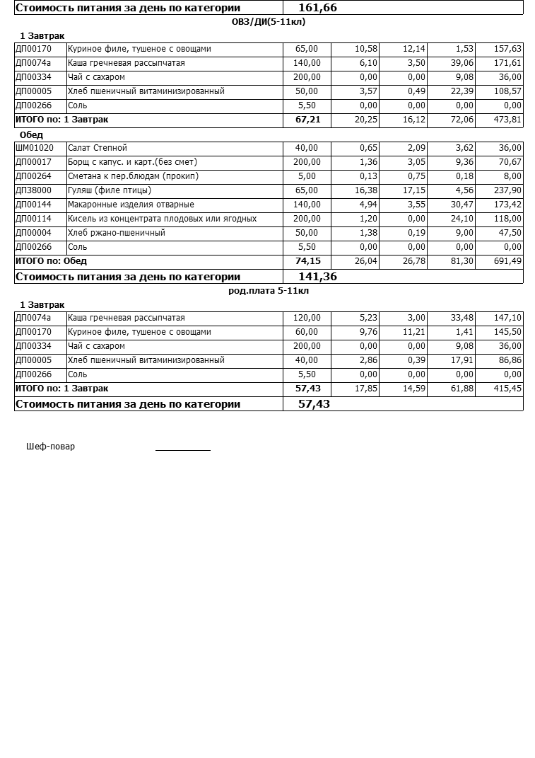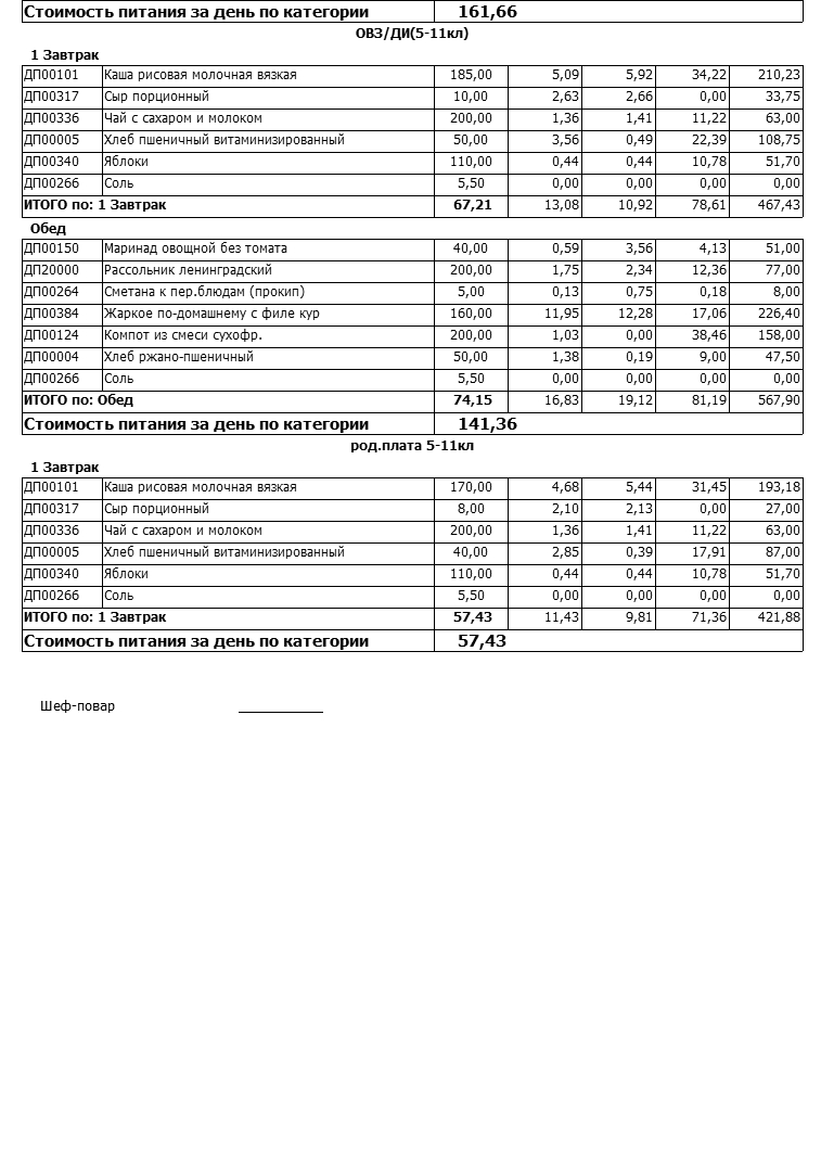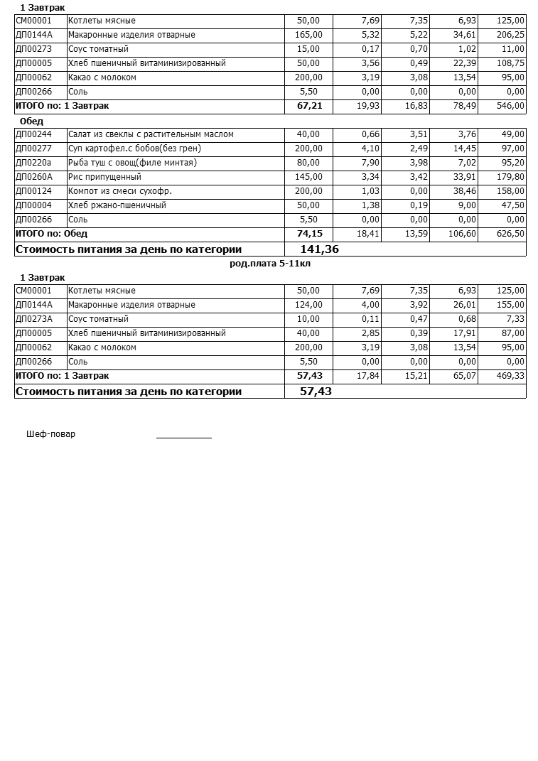 Стоимость школьного питания